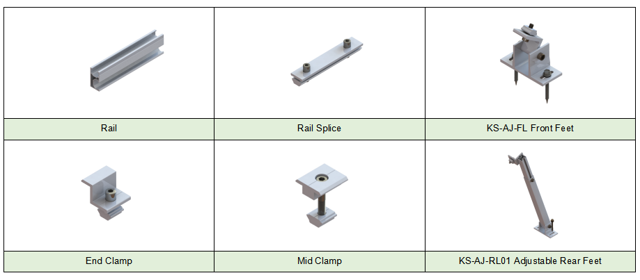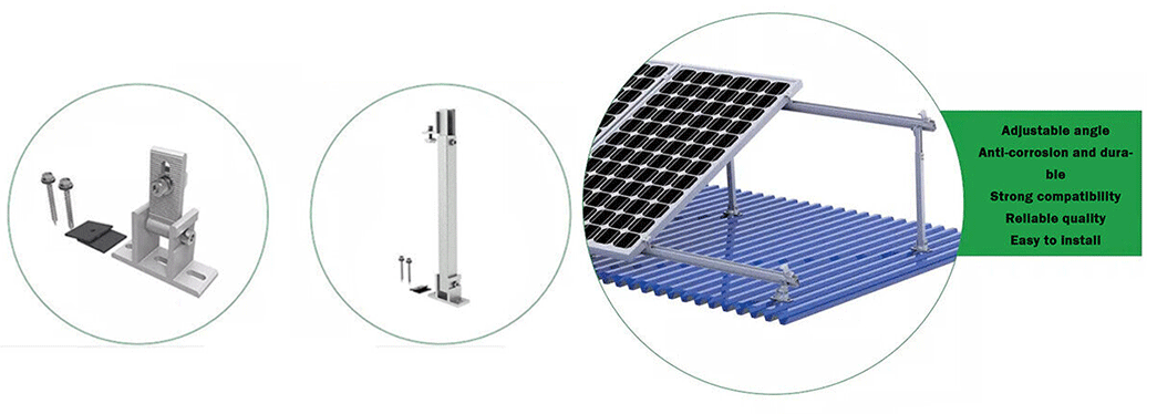 يتلاءم نظام التثبيت على السطح الشمسي القابل للتعديل بسهولة على السطح نظرًا لزاوية الميل المتغيرة وخيارات القاعدة . يمكن أن يكون إمالة ثابتة أو قابلة للتعديل ، وتلبية التعديلات الخاصة بالمشروع لتحسين ناتج الطاقة الشمسية. هذا التصميم المبتكر يلغي الحاجة إلى القطع واللحام في الموقع ويتميز بتكلفة منخفضة وتركيب سريع.