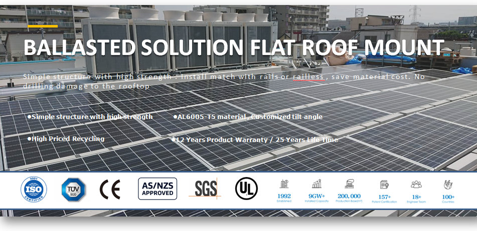 نظام التركيب على السطح المسطح ذو حامل ثلاثي الأرجل هو نوع من نظام تركيب الألواح الشمسية المصمم للأسطح المسطحة. يستخدم هذا النظام هيكلًا ثلاثي القوائم مثقلًا بكوابح لتوفير أساس مستقر وآمن للألواح الشمسية.