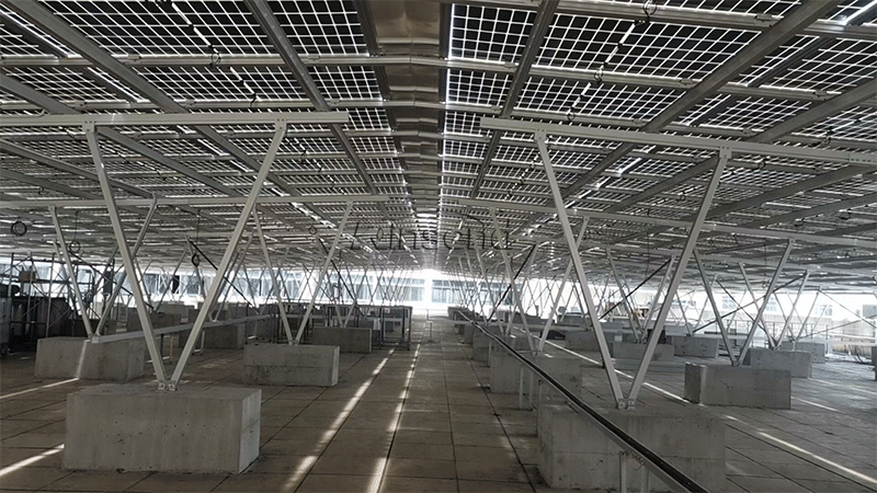 نظام تركيب سقف BIPV ،تم تركيبه واختباره حديثًا مشروع سقف BIPV 700KW ، في الصين. أنظمة تركيب الكهروضوئية ذات السقف الرأسي .