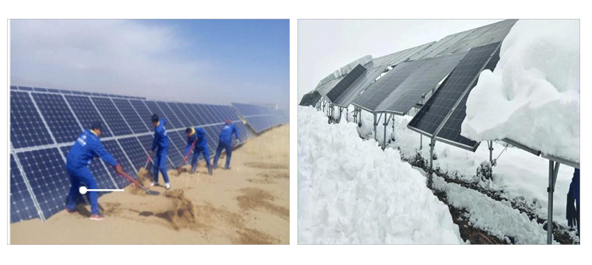 أولاً، من الضروري فحص المعدات الكهربائية للنظام الكهروضوئي قبل وبعد بداية الطقس القاسي. ما إذا كانت أوراق أبواب العاكسات، وصناديق التجميع، وصناديق التوزيع، وغيرها من المعدات مغلقة بإحكام، وما إذا كان هناك صدأ، أو ارتخاء، أو تسرب؛ ما إذا كانت الكابلات الكهروضوئية بين الوحدات قد سقطت؛ هل يسقط موصل MC4 على الأرض؟ في حالة حدوث الموقف المذكور أعلاه، فمن الضروري الاتصال بفريق الصيانة لدينا في الوقت المناسب.