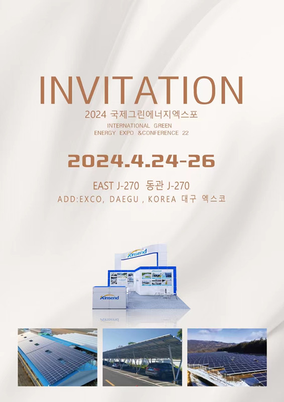 سيُقام قريبًا معرض الطاقة الخضراء 2024 في كوريا، وهو أكبر معرض دولي للطاقة المتجددة في كوريا والمعرض الدولي الرائد للطاقة المتجددة في آسيا. ستعرض Kinsend مجموعة متنوعة من أنظمة التركيب الكهروضوئية في المعرض.