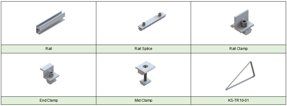Kensend's مطول نوع القدم L قداس يستخدم على نطاق واسع في PV أنظمة في كوريا وأوروبا لسقف القصدير المعدنية شبه المنحرف PV تركيب أنظمة.