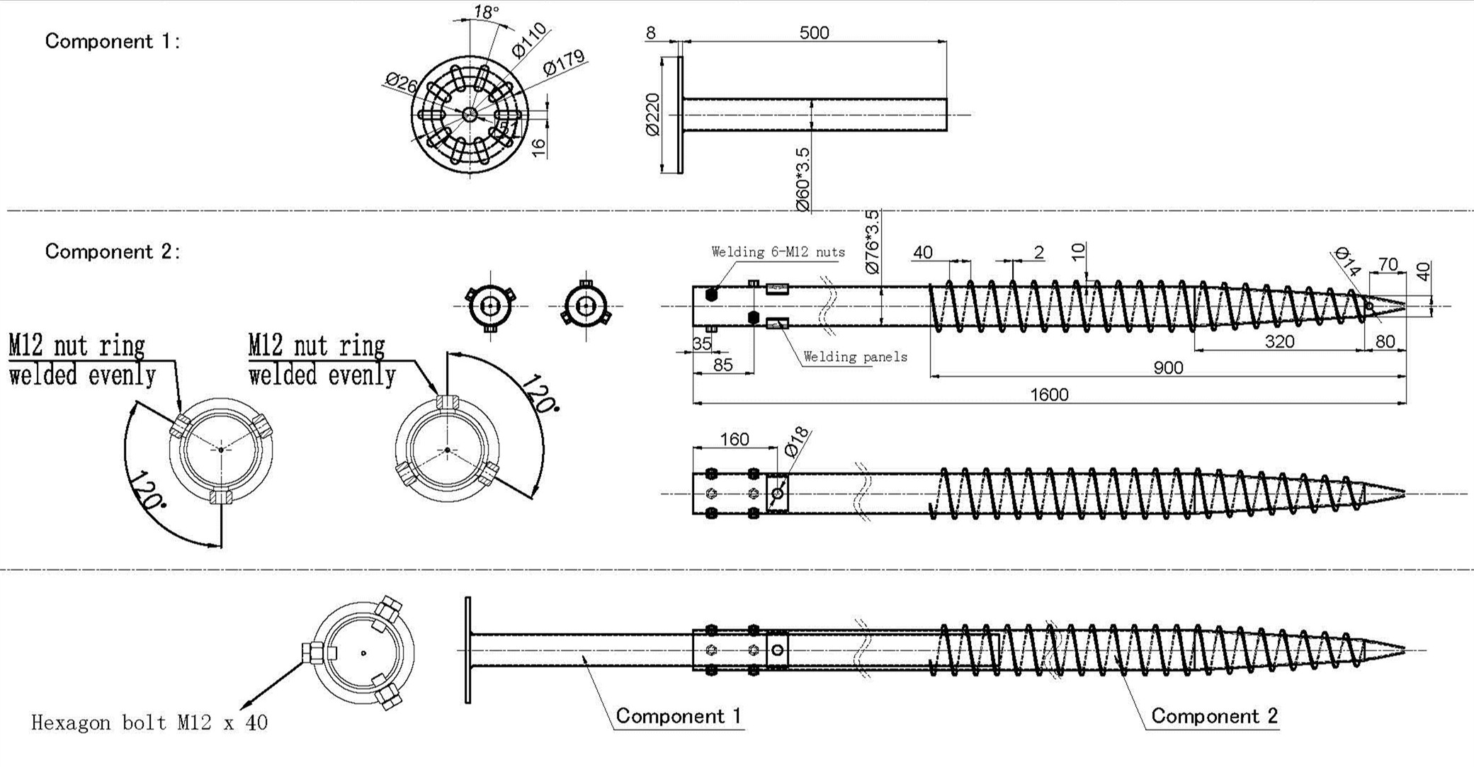 ال يعتبر المسمار الأرضي القابل للتعديل المجلفن مثاليًا لـ مشروع للطاقة الشمسية مثبت على فتح غير مستوي أرض. مقارنة بـ الخرسانة القاعدة ، يتميز اللولب الأرضي بتكلفة أقل بناء أقصر فترة ، البيئة ودية ، جميع الأحوال الجوية قابلة للتطبيق و قابلة لإعادة الاستخدام.