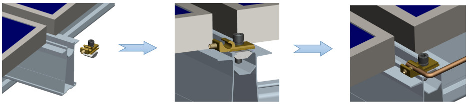 ال خطوط نحاسية تجميع ، الذي ويسمى أيضًا الأرض العروة ، قم بتوصيل النظام بأكمله بالأرض بـ سلك عن طريق ثقب غشاء أنودة سكة ، الحصول على تأثير الحماية من الإضاءة والتسرب