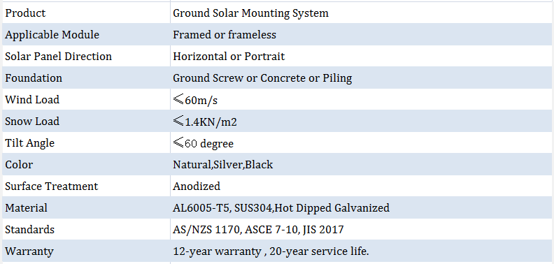 يتم تطبيق نظام تصاعد الركائز الأرضية الشمسية على السكنية ، المقياس التجاري والمرافق PV مشاريع على غير - رملي أرض. يناسب كلاً من الإطار أو بدون إطار ألواح شمسية خاصة على التضاريس غير المستوية. يعمل من أجل مستوى الأرض أيضا.