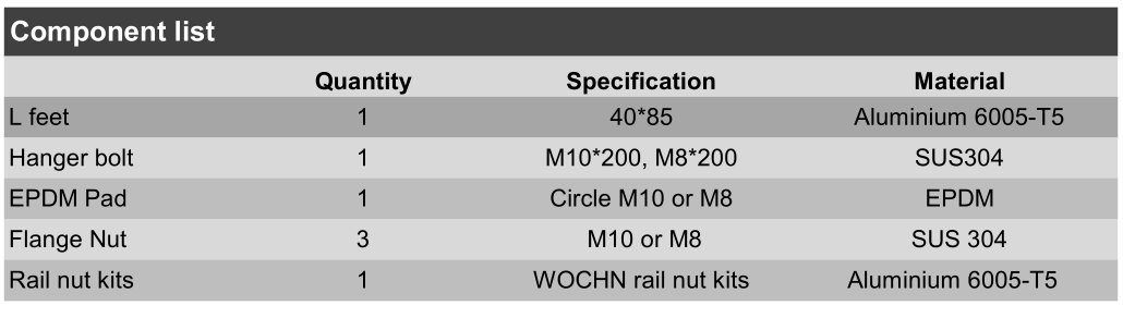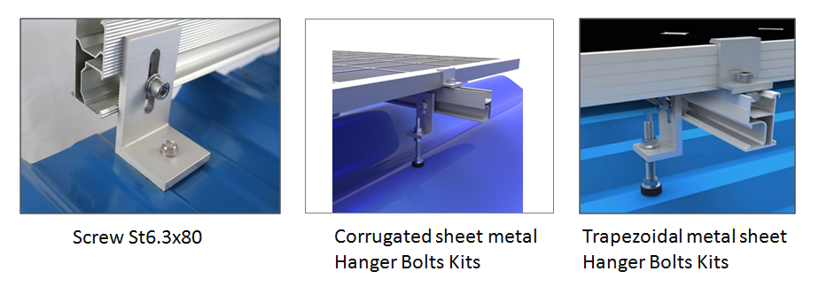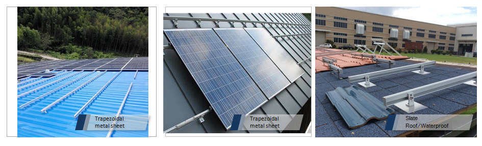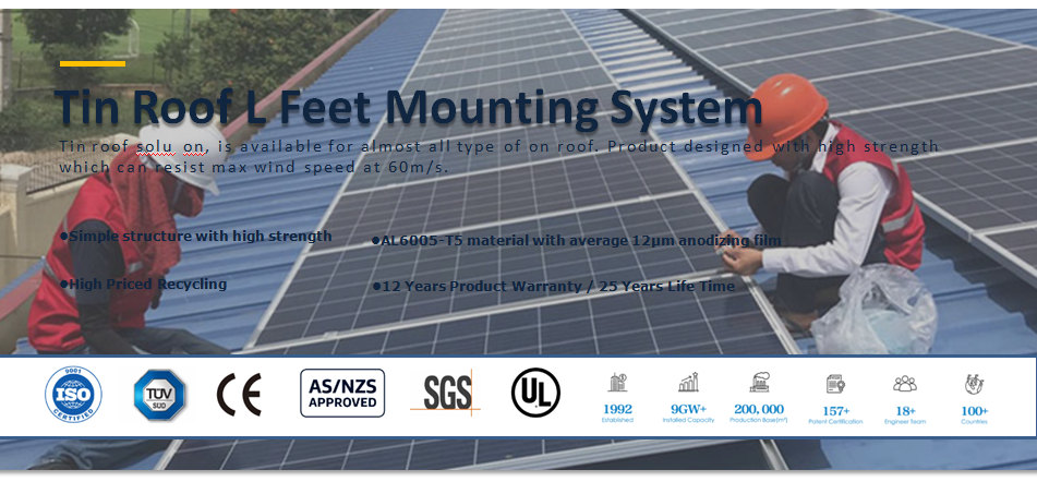 Kensend's مطول نوع القدم L قداس يستخدم على نطاق واسع في PV أنظمة في كوريا وأوروبا لسقف القصدير المعدنية شبه المنحرف PV تركيب أنظمة.