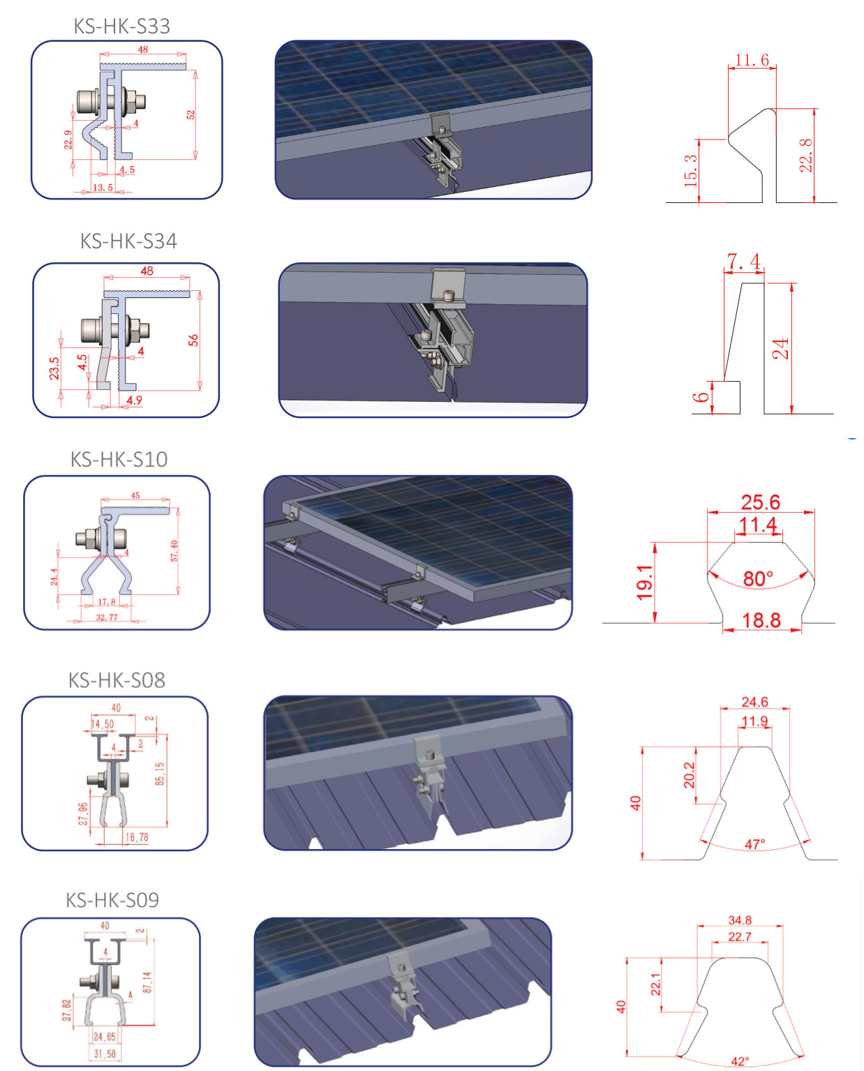 KLIP-LOK 700 خطاف سقف ، مشابك السقف الدائمة تجعل التثبيت على سقف التماس المطوي أمرًا سهلاً بشكل خاص. يتم تثبيت المشابك ببساطة على اللحامات الدائمة. يمكن مطابقة أنواع متعددة من المشابك وفقًا لتركيب السقف المائل ، بحيث يمكن تثبيته بإحكام لضمان ثبات النظام بأكمله. يخفضهليتم توصيله بسرعة بجميع مكونات السكك الحديدية.