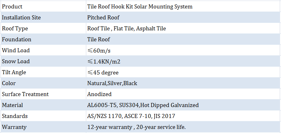 خطاف من الفولاذ المقاوم للصدأ للطاقة الشمسية خطافات بلاط شمسية مصنوعة حسب الطلب بناءً على مواصفات البلاط ، ولديها نوع خطاف بلاط قابل للتعديل وثابت للاختيار. عدة أنواع وفقًا لاتجاه تخطيط اللوحة. مجهزة بقضبان تركيب خفيفة الوزن وسريعة ومشبك الألواح الشمسية ، تجعل مكونات تركيب الطاقة الشمسية البسيطة التثبيت أمرًا سهلاً.